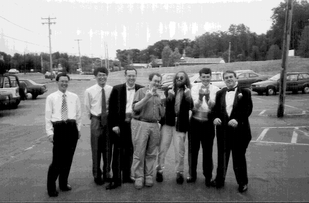 Hey, I just reached the bottom of the pile, and I remembered why I was looking through it in the first place! I was looking for a picture from my old roomie Rob’s wedding. I scanned it in quite a few years ago on my old black & white scanner, and put it up on the web page. It’s still here, and it looks like crap! I wanted to scan it in again, in color this time. Lo and behold, there it was, at the very bottom of the pile. And here it is, in color now!